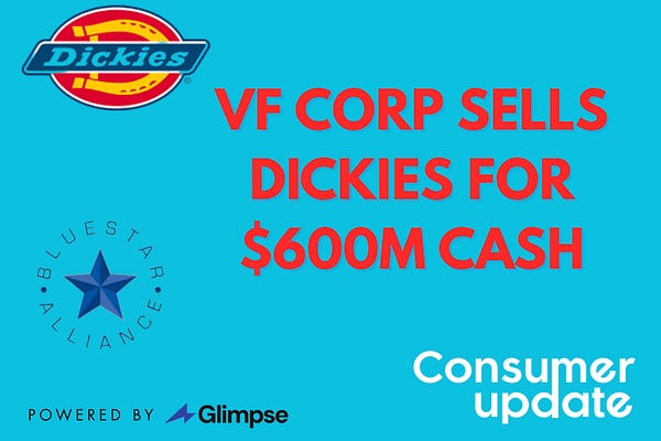 VF Corporation sells Dickies for $600M in cash to Bluestar Alliance. More venture and CPG news.